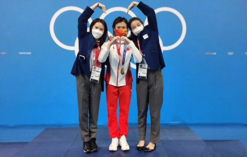 搜狐娱乐讯 当地时间8月4日,在中国游泳队获得男子4*100米混合接力冠军后,谷爱凌与四名冠军队员合影,她激动地为中国游泳队拍手、竖大拇指,最后还与潘展乐握手,可以说是奥运冠军的梦幻联动了!