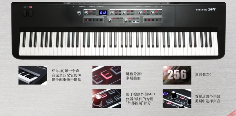 舞台电钢:科兹威尔SP6,屡获殊荣的混响、延迟合唱等实时调整集合于12kg便携式方便所有音乐人士的舞台及工作室使用,日本音乐会三角钢琴、高清德国D大钢琴音色,2gb零加载dsp超快的性能负荷。可通过sp6的4个按键实时控制,轻松分类与音色试听。
