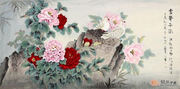 欣赏更多名家国画牡丹图就上易从网!多年来,易从网一直是国内有权威,有影响力的名家字画网站。易从网不仅全部作品都出自名家字画本人手笔,保证真品,手绘原稿,而且按艺术家的知名度,满足各个消费群体的需求,不仅在业内树立了很好的口碑,拥有特定的字画名家与其签约,而且还有着一大批的忠实藏家,是众多字画爱好者以及藏者朋友购买字画的最佳平台,并多次被多家新闻媒体报道宣扬。