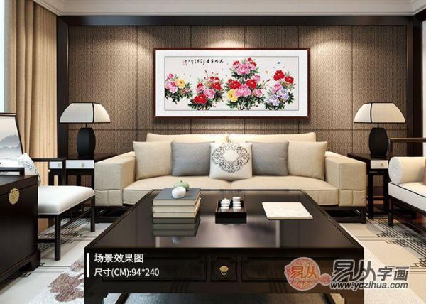 原标题:沙发墙上挂什么画好 牡丹是客厅风水挂画的不二之选
