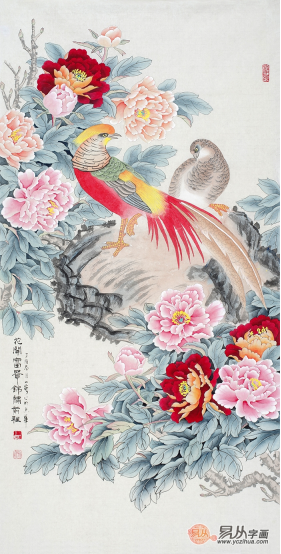 王一容新品牡丹锦鸡图《花开富贵锦绣前程》易从网作品