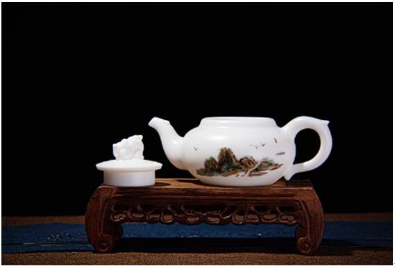 每把壶上的山水画都由罗梦林亲手绘制。品茶时,齿颊留香,把玩细看,画面疏朗清新,山峦叠嶂,如梦似幻,引人睱想。品壶、品画,品人生。方圆之间,似玉般的油润感直透指尖,让人爱不释手。