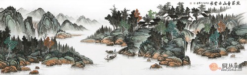 推荐收藏 吴大恺八尺横幅山水画《泉落青山白云飞》【易从网】