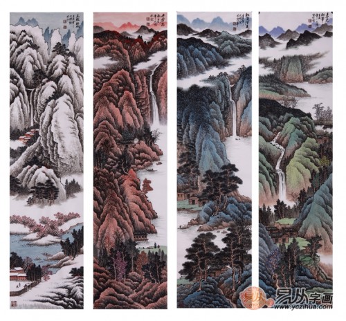 吴大恺四尺条屏山水画作品《春夏秋冬四条屏》【易从网】