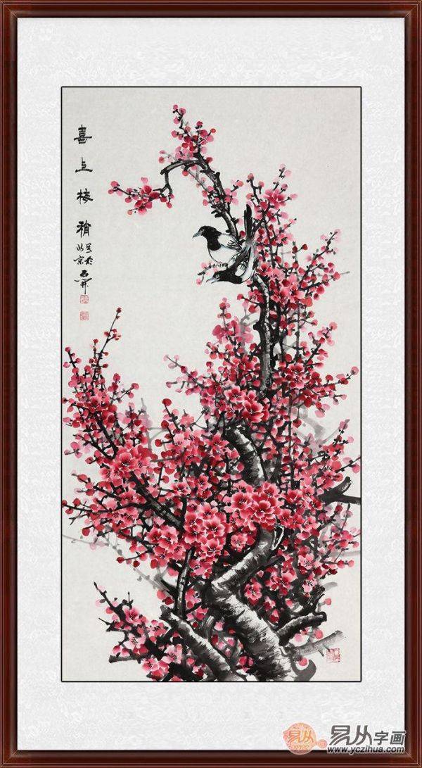 画家石开国画红梅图《喜上眉梢》作品来源:易从网