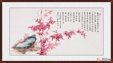 宋代词人周敦颐曾说:“牡丹,花之富贵者也”。这幅《喜迎富贵》中牡丹与喜鹊相搭配,形成更加美妙的寓意。石头旁的牡丹丛,红色的牡丹魅力开放,两只喜鹊在石头上,低头赏花,仿佛赞赏这美丽景色,喜鹊作为一种吉祥的鸟类,象征着好运与福气,进门看到喜鹊图,寓意喜事到家。