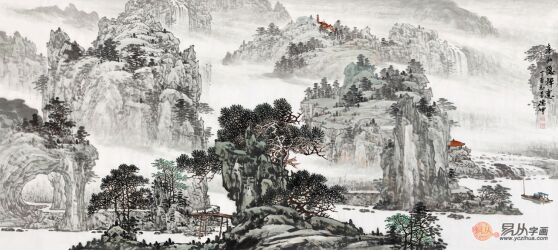 林德坤(精品)手绘原创山水画《春山隐禅意》 作品来源:易从网
