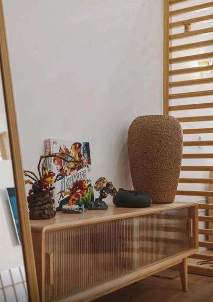 设计师充分考虑到业主本身对于日式风格的喜爱,所以将原木色充满了家里的每一处,配以白墙,整体营造出简约宁静的日式风格。在软装搭配上则选用棉麻质感的家具,让家的简约不至于冰冷,反而增添几分温暖。日式风格中随处可见的木质家具、木地板,是因为日式风格注重的是与大自然相融合,所用的装修建材也多为自然界的原材料。对于木质家具及地板的保护,设计师给出温馨小建议一定要注意防潮,我们铺木地板之前,要记住首先在地上先打龙骨,使地板与地面有一定距离。