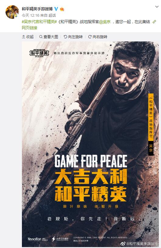 除此之外,著名演员吴京也感受到了和平精英的诚意,直接代言和平精英,吴京在《战狼》里塑造的铁血硬汉,与和平精英的形象完全符合。各位特种兵做好准备跟吴京一起特训了吗?有玩家强烈建议请求吴京来段局内语音配音,虾米酱想想就很期待,要是能有这段语音,虾米酱可能能玩一辈子!