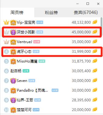 而昨晚的首秀场景更是相当夸张,虎牙的各大人气主播都来刷礼物,出手就是藏宝图,相当有牌面,孤影、心态、小仔爷、空伐一个都没落下,尤其是心态,礼物刷的根本停不下来,而各大主播为了欢迎张大仙,更是将直播间改名。昨晚的人气更是突破了2600万,贵宾数远超10万,当之无愧的一哥。
