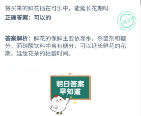 原标题:将买来的鲜花插在可乐里能延长花期吗 蚂蚁庄园今日答案7.11