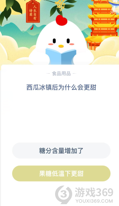 西瓜冰镇后为什么会更甜?11月4日蚂蚁庄园每日一题的答案是什么?选对答案的话就可以领取180g小鸡饲料了,小伙伴们一起来看看今天的正确答案吧!