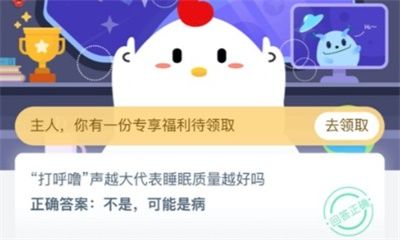 蚂蚁庄园2020年11月17日答案 打呼噜声越大代表睡眠质量越好吗?