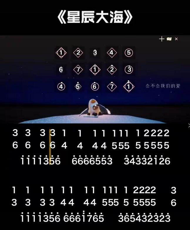 光遇星辰大海乐谱 星辰大海简谱曲谱乐谱分享