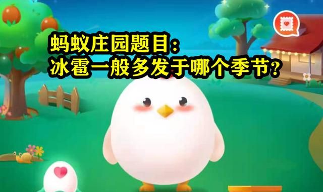 蚂蚁庄园冰雹多发于哪个季节答案解析