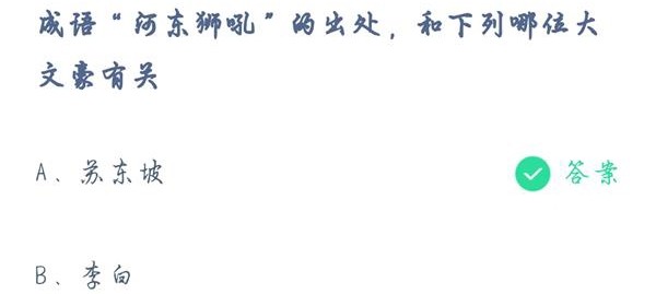 原标题:蚂蚁庄园8月26日答案 成语河东狮吼的出处和下列哪位大文豪有关