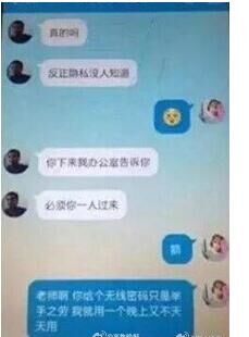 温州某中学#宿管男老师表白学生#。QQ截图显示:一女生询问wifi密码,老师却发多条暧昧信息称“不想做师生”“很早就喜欢你了”…被女生拒绝后,他还威胁“犯错误就不让你住校”。 当地教育局介入调查,涉事老师被停职,校长遭免职。