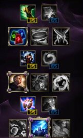 这里采用了18-0-12的加点方法,刀妹的W技能配合冥火,伤害很高,加上新天赋新鲜血液和战斗专注,砍人砍肉一般容易,无畏也可以为刀妹提供很好的抗伤能力。