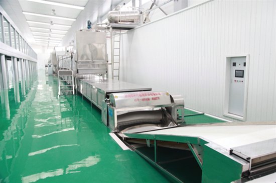 而红薯淀粉生产中心一尘不染,采用国内一流的全封闭式淀粉生产工艺及粉条粉皮生产工艺,可实现从红薯到淀粉、到粉条、粉皮的全封闭无尘生产加工,可每小时处理红薯达25吨,日生产粉条8吨、生产粉皮2吨,兼具了产业化生产与绿色有机品质的多种优势。