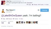 Ric Bucher报道科比说到了加索尔的名字,而Bucher随后问如果用1到10来表示对于加索尔留下的信心,科比回答了“8”。