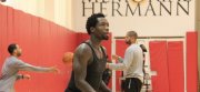 此前火箭队击败魔术队的比赛中,火箭队控卫帕特里克-贝弗利被打破了鼻子,当地时间本周五上午的训练中,贝弗利带着一个测试用的面具进行了训练,不过他说他感觉不舒服,而且可能不会在今天的比赛中戴着面具打球。