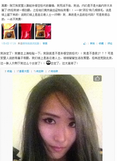 微博一直以来都是鱼龙混杂的地方,各种奇人异事应有尽有,就连“齐天大圣孙悟空的后人”都在日前蹦了出来。网友调侃:“蜘蛛精”是你什么人呢?