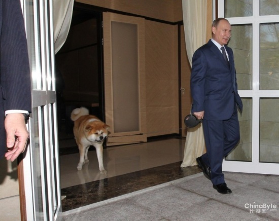 普京牵狗见安倍 此狗是日本送普京的礼物(2)