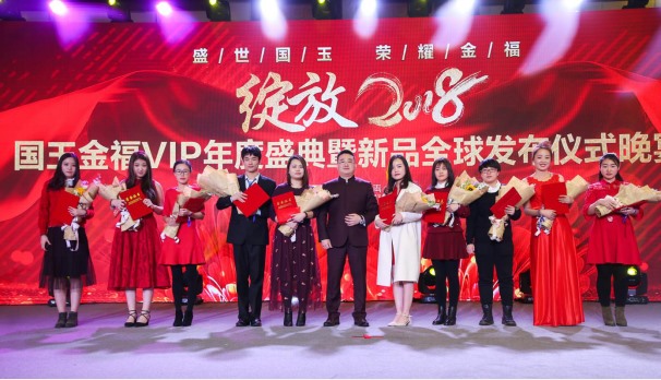 1月28日,北京新云南皇冠酒店国际会议中心高朋满座、贵宾云集。激昂高亢的音乐伴随着掷地有声的擂鼓,一曲《龙腾盛世》拉开了本次盛典的序幕。国玉金福代理商、投资大咖、行业领袖、宝玉石收藏家,以及国玉金福精英团队等五百余位自全国各地的精英共同见证了“盛世国玉·荣耀金福”年度盛典暨新品全球发布的瞩目时刻!