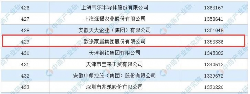 其中,欧派家居集团以1353336万元的营业收入入选中国制造企业500强。