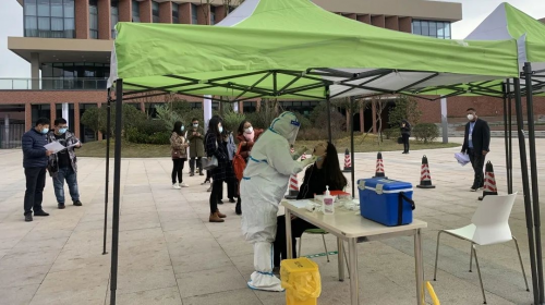 截止12月15日,吉利学院针对不同风险人群5次核酸检测,完成3260人检测,检测结果全部呈阴性,并迅速从北京校区空运20000只口罩,医务室也组织进行5场消杀培训。
