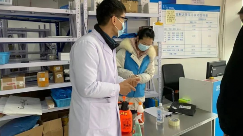 吉利学院医务室老师还专门为后勤保洁消杀人员、食堂工作人员、校区内商家、快递点和后勤保洁人员等容易密切接触的点位进行5场消杀培训,以帮助他们科学的应对新冠疫情。