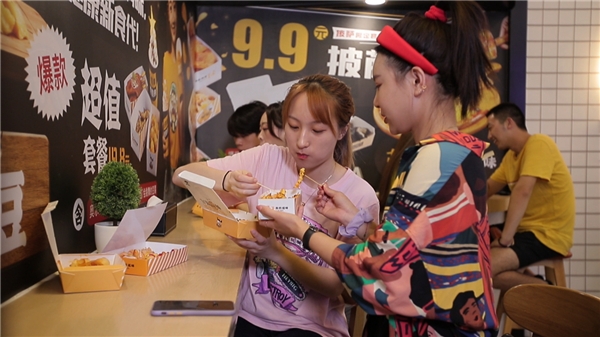 除了店面装潢,一次性餐具等经过专业团队的可视化塑造,赋予“炸洋芋”新的潮流面貌,成为镜头里的加分项。