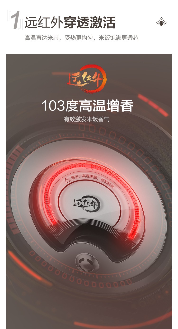 苏泊尔电饭煲怎么样?这款远红外电饭煲除了内胆做出了升级以外,还在顶部运用了远红外电磁加热技术,实现了对米粒的全方位环绕立体加热。