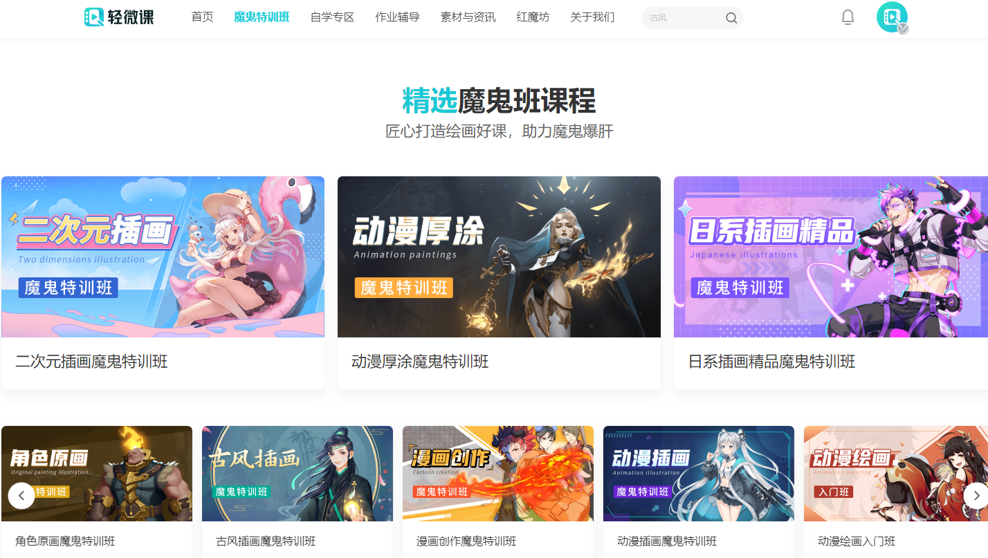 通过轻微课官网的布局我们可以看到,轻微课主打的便是其网红课程产品:魔鬼特训班。