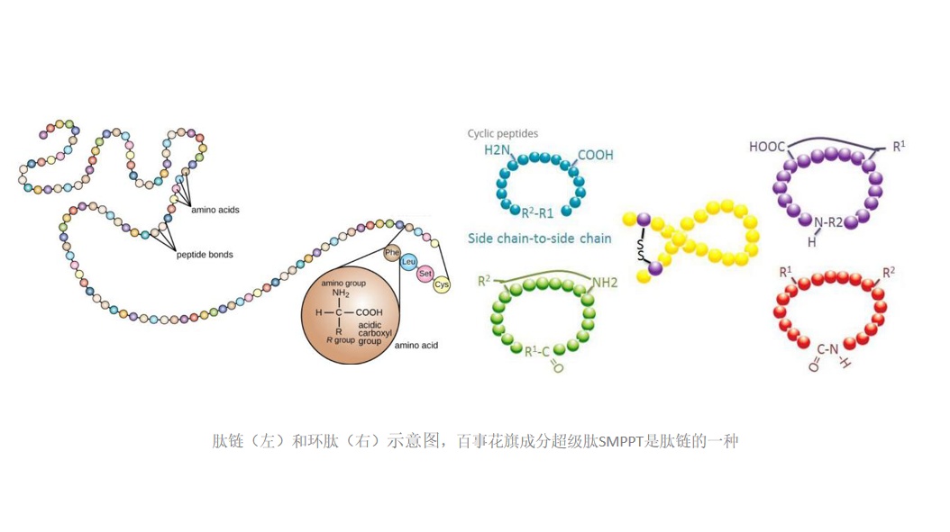 众所周知,超级肽SMPPT(small molecule peptide)是指由2-15个氨基酸组成的肽链。而环肽是具有环状结构的多肽链,多数由5-14个氨基酸组成,分子量约500-2000Da。虽然与线性肽相比,环肽具有多种优势,可改善肽链的结构特性;改善吸收的药代动力学特性和为达到蛋白质目标所需的生物膜通透性。