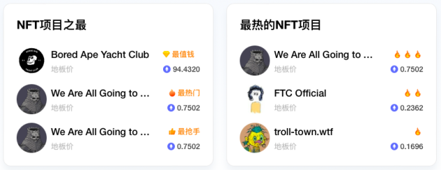 根据最新数据,目前全网最值钱的NFT项目是无聊猿,最热门的是We Are All Going to Die、FTC Official和troll-town.wtf,全都是头像类。