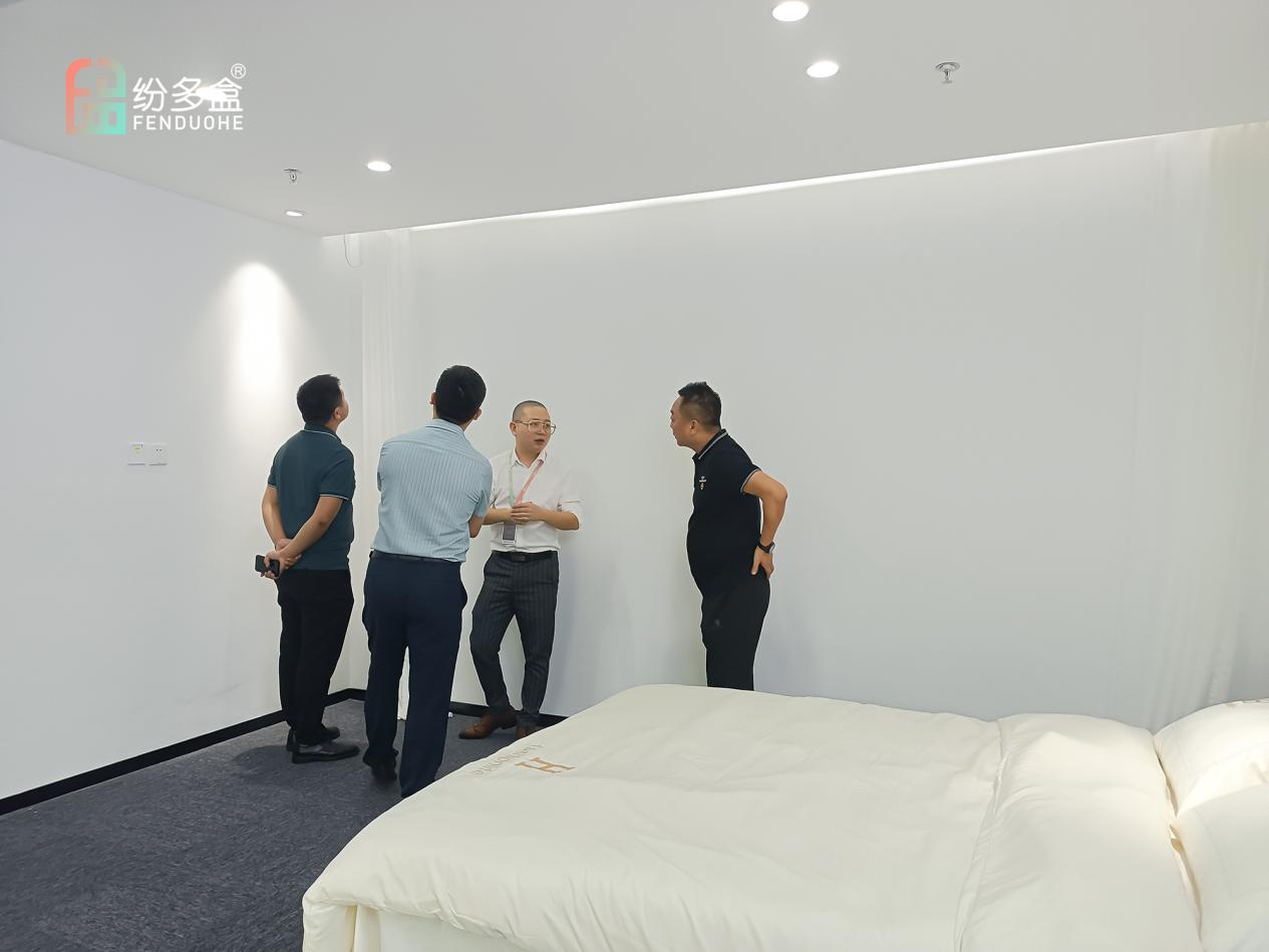 8月9日,勉县商会众领导一行走进柔美尔科技进行参观考察,就酒店客房的智慧化趋势、现状以及市场需求等等进行分析探讨,并就纷多盒2.0智慧酒店终端项目未来的定位和发展进行了解研讨。