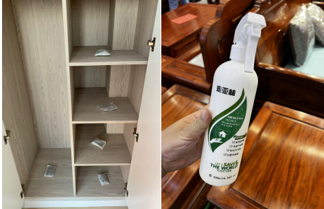 这是一款植物提取液,一方面撇弃了化学类喷剂的二次污染,另一方面成分更为安全可靠。目前市场上众多除醛治理公司都有使用,原理上也更具有前瞻性,可以加快甲醛释放和分解,而不是掩盖封闭。不需要紫外线的光照,就可以直接分解甲醛等有害物质。
