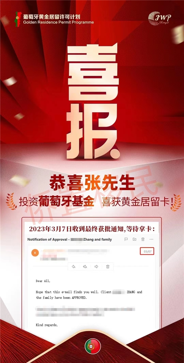 好消息,我司又一位葡萄牙基金客户移民身份成功获批!