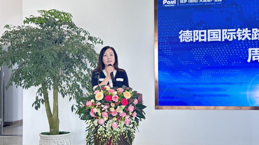 建设德阳国际铁路物流港是德阳市委、市政府贯彻落实省委“四向拓展、全域开放”发展战略,加快我市开放型经济发展的重要决策部署。德阳国际铁路物流港于2017年筹建,2019年正式挂牌成立,规划面积16.09平方公里。活动当天,德阳国际铁路物流港党工委员周晓莉致辞中诚邀各位优秀的企业家前来投资兴业。