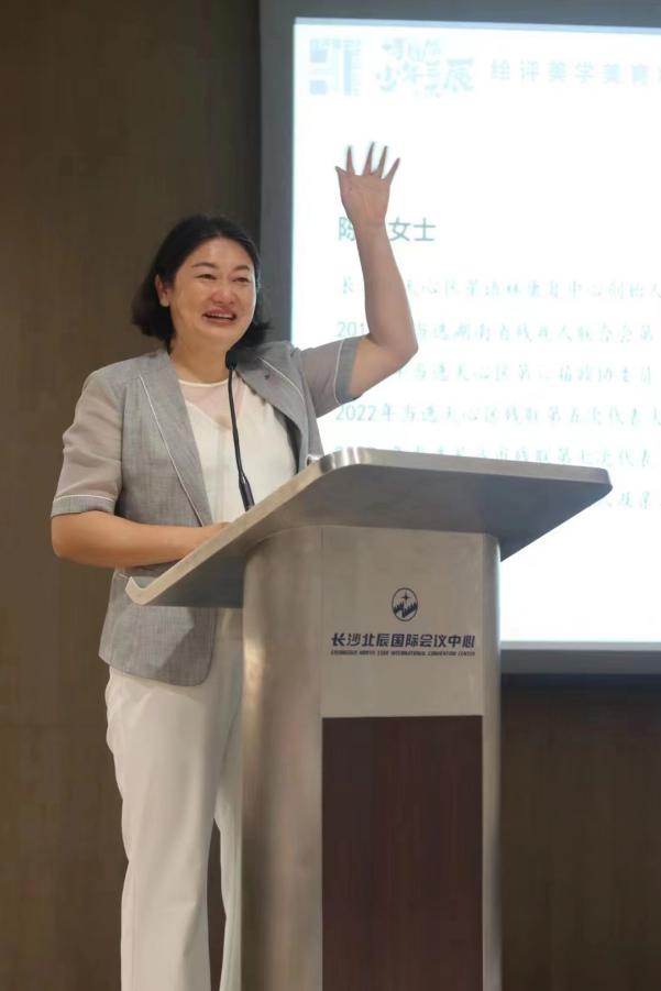 慈善公益组织星语林康复中心代表陈蓉女士发表了演讲,她作为孤独症儿童康复机构的负责人,高度评价了《博物馆少年艺术展》组委会在慈善事业中的贡献,并分享了对美育事业的深刻见解。