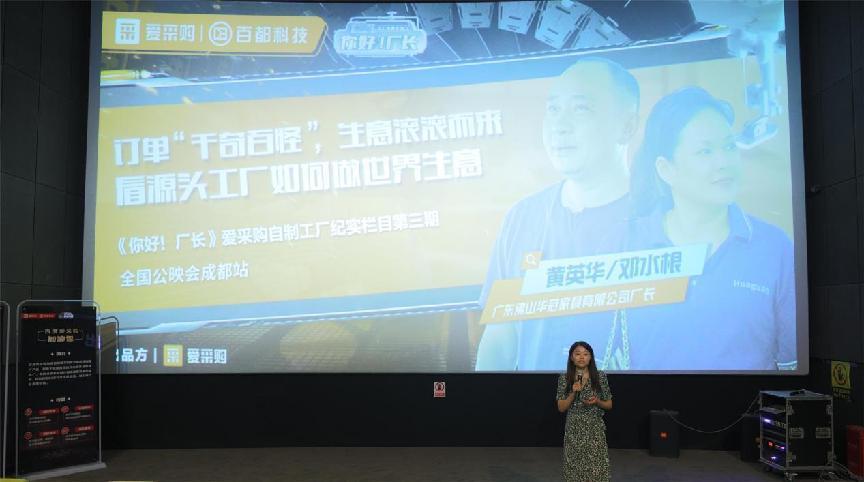 8月16日,联动全国60+城市,爱采购自制工厂观察栏目《你好!厂长》第三期成都站高燃首映,现场气氛火爆、掌声不断。第三期主人公——佛山市华冠家具制造有限公司厂长邓水根和黄英华夫妇,通过视频与成都企业家分享“工厂爆单”的经营秘籍,以亲身创业经历鼓励现场企业家顺应时代浪潮、紧握转型密码。