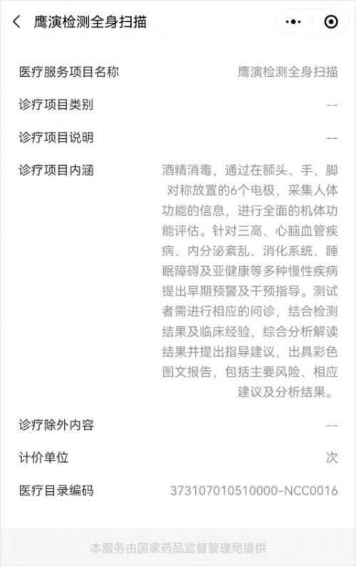 随着医学技术的不断发展和进步,近日,鹰演检测全身扫描纳入医疗目录编码(医疗目录编码373107010510000-NCC0016),这一消息引起了业界广泛关注。纳入医疗项目收费目录,将便更多的亚健康患者享受到鹰演带来的益处。