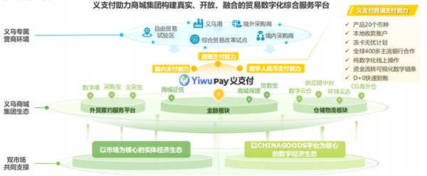 基于自身独特的区位优势,YiwuPay义支付还与Chinagoods平台进行深度合作。凡是通过小商品城Chinagoods平台履约、用YiwuPay义支付收款的商户,若发生冻卡现象,均由商城集团先行垫付贸易资金,并可享受全程支持与协助。