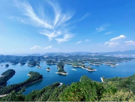 当然,千岛湖也不只有美食吸引人,它的魅力还在于通透、开阔的湖景。中心湖区和东南湖区,是千岛湖主要的两个景点湖区。中心湖区以人文体验为主,自然风景为辅,相比之下它更加商业成熟,有多种水上娱乐项目。东南湖区以自然风景为主,人文体验为辅,它更加原始纯净,有多座山峰可以攀爬。其中千岛湖最佳的湖景拍摄地点在梅峰岛的山顶,可以俯瞰千岛湖全景。大家可以通过步行或者缆车,山顶有东西两个观景台,方便大家进行拍照打卡。