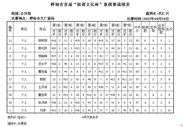 由于受疫情影响,已经连续三年没有大型赛事。此次由李志先生赞助的“娱道文化杯”象棋公开赛激发了参赛选手的热情。拼杀激烈,精彩纷呈。直到最后一轮开始前仍然看不到冠军花落谁家。冠军得主陈树阳第二轮即失手,但从第三轮开始豪取五连胜,收获了棋坛生涯的第二冠。亚军得主郭兆民一路磕磕绊绊四次死里逃生。最后一轮与迟永平鹬蚌相争,使冠军旁落。季军得主杨晓峰曾称霸桦甸棋坛二十余年。此次赛事六轮战罢已无缘冠军。此外没有取得名次的老棋手孙俊林、韩光玉、于贵元、刘连才、李克增等都有精彩对局奉献。期待下一次的比赛有更激烈的对抗,更精彩的对局。