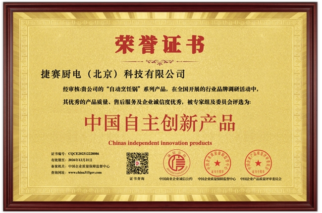 创新是品牌成长的驱动力,成立20余年以来,捷赛一直专注研发、生产基于中式烹饪的智能家电,从2005年首次推出第一代自动烹饪锅以来,捷赛就是智能烹饪领域的开拓者和领跑者。这些年,捷赛逐一攻破技术瓶颈,解决大火防溢、急火防糊、精准测温、自动收汁等技术难题,其研发的“自动烹饪锅”系列产品也得到行业肯定,屡获殊荣,其中就包括中国企业质量认证监督中心专家组及委员颁发的“中国自主创新产品”奖项。