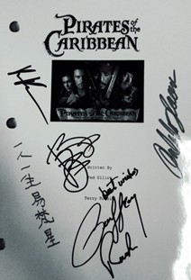 “杰克船长“首映礼上用中文题词”一人一生易梵星“